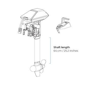 RPM nominal 2300 590 N / 132.6 lbs de empuje estático 51% de eficiencia total máxima Refrigeración por agua Manejo directo Control orientado al campo Recorte ángulos que incluyen 0 °, 5 °, 10 °, 15 ° Ángulo de inclinación 60 ° Hélice de 26 × 17.1 cm / 10.2 × 6.73 pulgadas Dirección de timón de 360 °, dirección bloqueableConveniencia